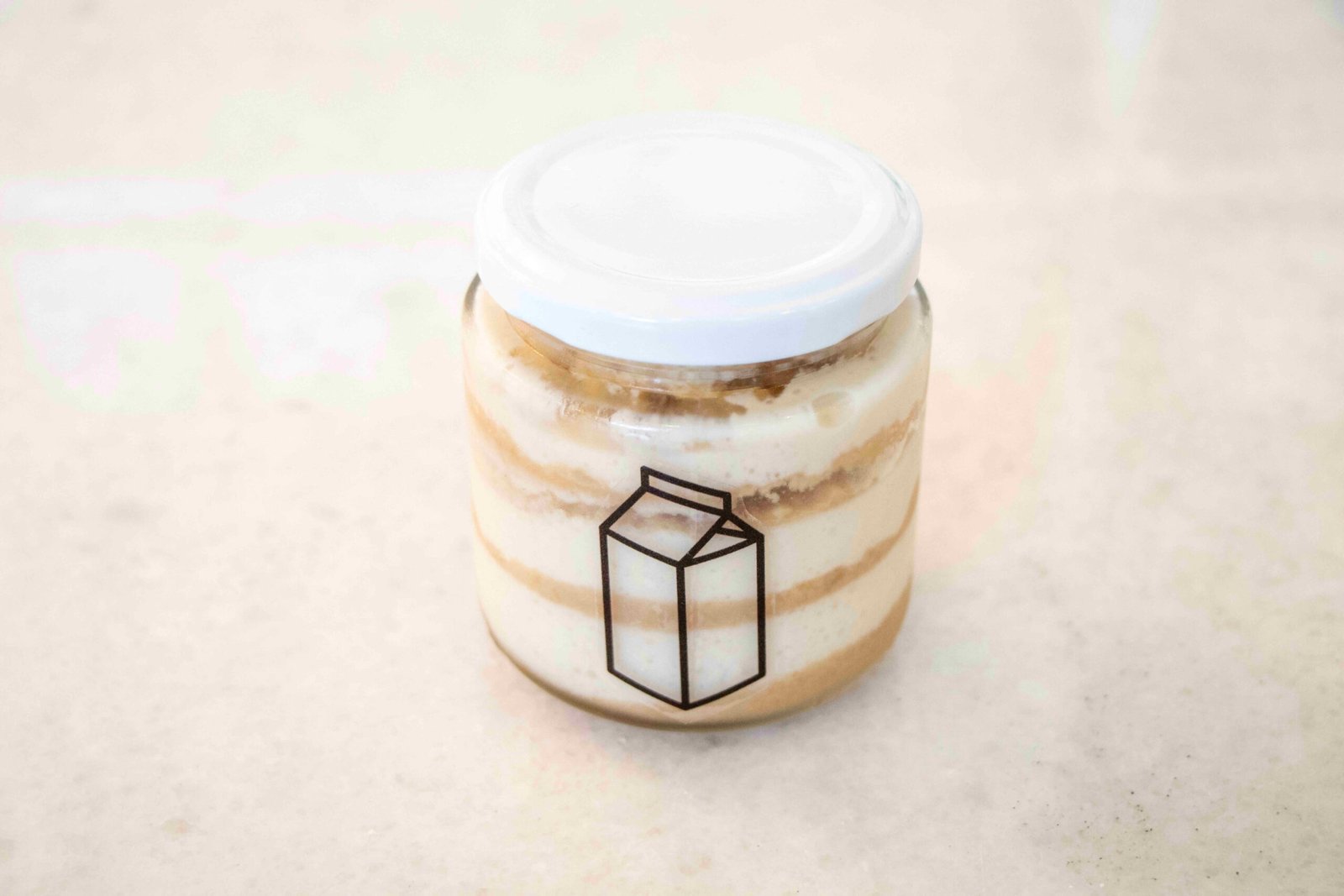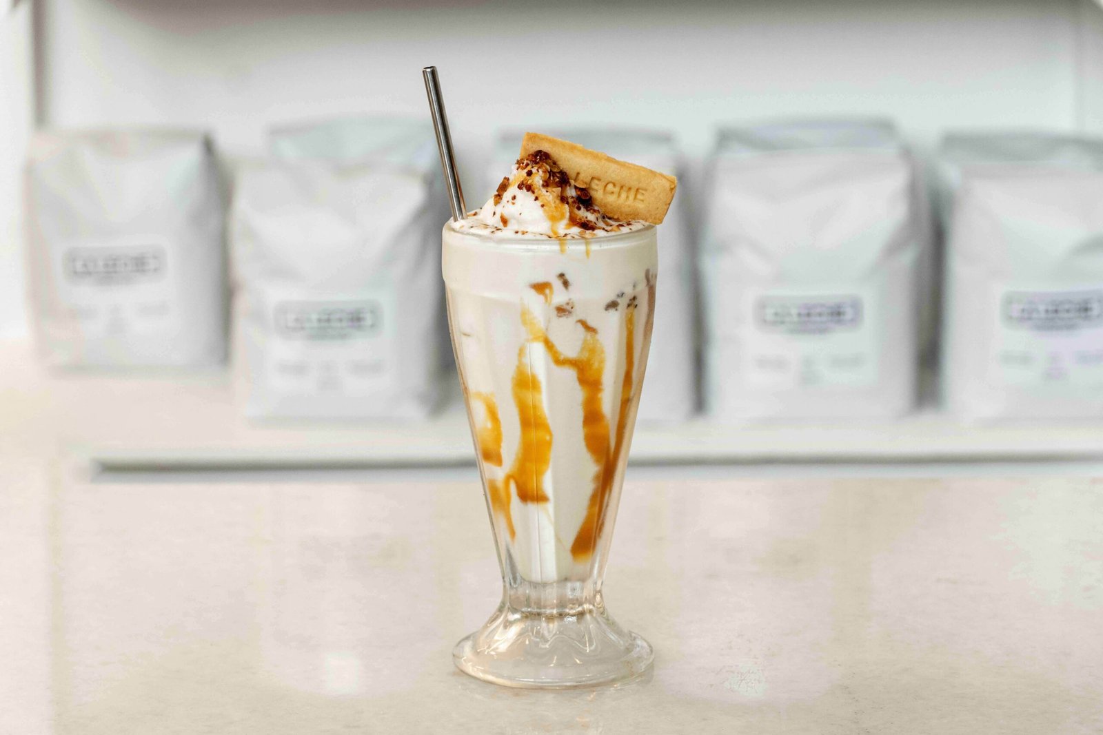 MALTEADA DE HELADO DE VAINILLA Y MAZAPÁN + GARAPIÑADO DE SEMILLAS + SALSA DE CARAMELO SALADO