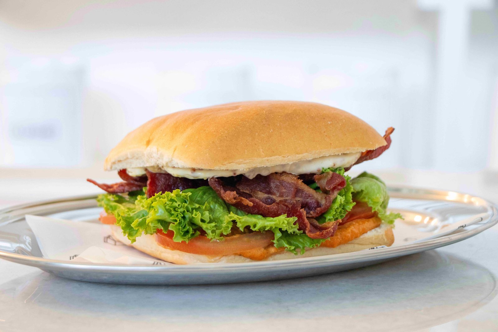 ROMESCO + TOCINO CROCANTE AHUMADO (60GR) + REBANADAS DE TOMATE + LECHUGA ITALIANA + ALIOLI DE LA CASA + MOSTAZA + CUADRO CHAPATA NATURAL