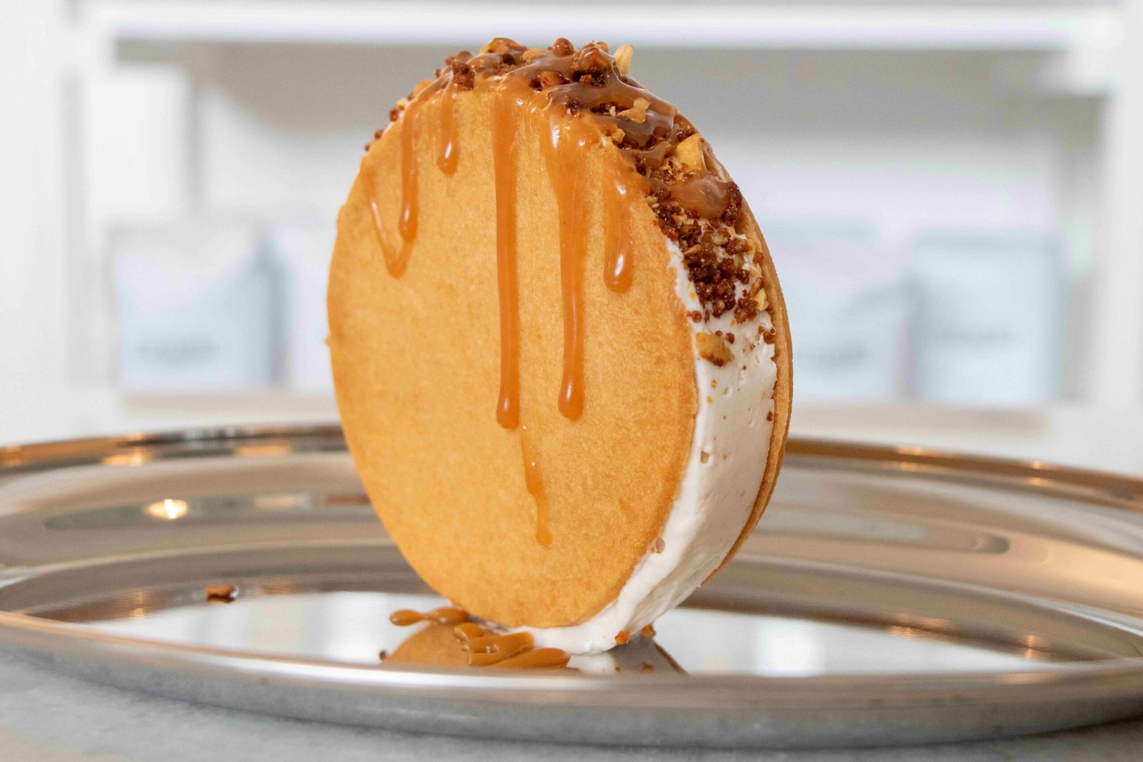GALLETA DE VAINILLA + HELADO DE MAZAPÁN + TOFFE DE CARAMELO SALADO + SEMILLAS GARAPIÑADAS (100GR)